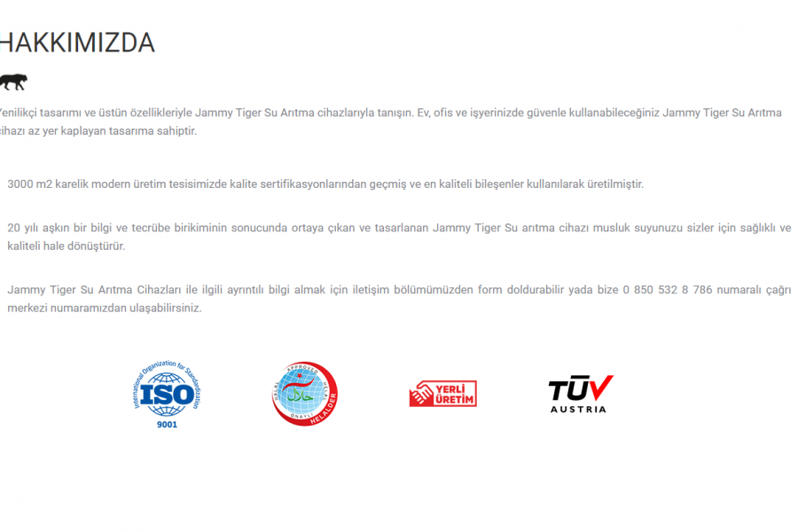 Web Tasarımı ve Uygulama WordPress – Haziran 2018 Projeyi Paylaş Share on FacebookShare on Facebook TweetShare on Twitter Pin itShare on Pinterest Share on LinkedInShare on LinkedIn Project navigationÖncekiPrevious project:İconic Su ArıtmaSonrakiNext project:Jammy Filter